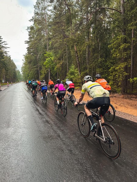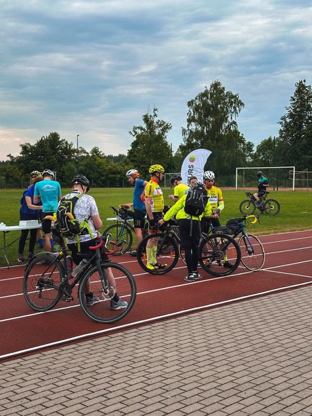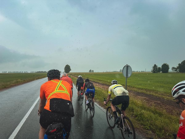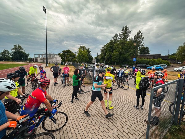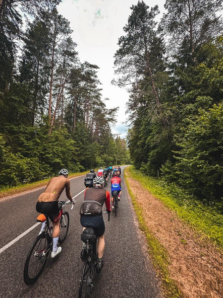 10:29 - Iki pirmojo kontrolės punkto Prienuose atvykstam gan greitai, fotografuojamės ir keliam į bendrą organizatorių chat’ą. Galvoju jau eiti iki degalinės užsipildyti vandens, bet gertuvę papildo vieno iš dalyvių palaikymo komanda, tad sutaupau laiko. Paprašo pagalbos, surandu tvirtinimo dirželį ir duodu. Tik bam, pirmoji grupė neužsibuvo pirmame punkte ir greitai pajudėjo. Tad vejuosi, nesinori iki Kintų kolkas minti vienas ar mažoje grupėje. Prisiviju ir prasideda pirmas rimtesnis kalniukas, niekas per daug nespaudžia, lengvai iš lėto kylam.
