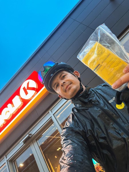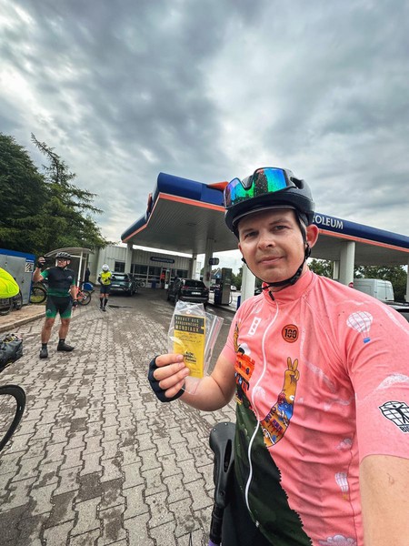 Jurbarke prasilenkiu su vienu iš pirmos grupės atkritusių dalyvių. Paaiškėjo turėjo prakolą ir “tubeless” sistema neužklijavo, teko jam dėtis kamerą. Trumpai šnektelėjus, jis vis dar norėjo pabūti degalinėje ir pasakius planuojamą mano vidutinį greitį, pajudėjau toliau vienas. Už Jurbarko šiek tiek praalkstu, tad išgeriu skystą maistą, kurį specialiai buvau pasilikęs nakčiai.