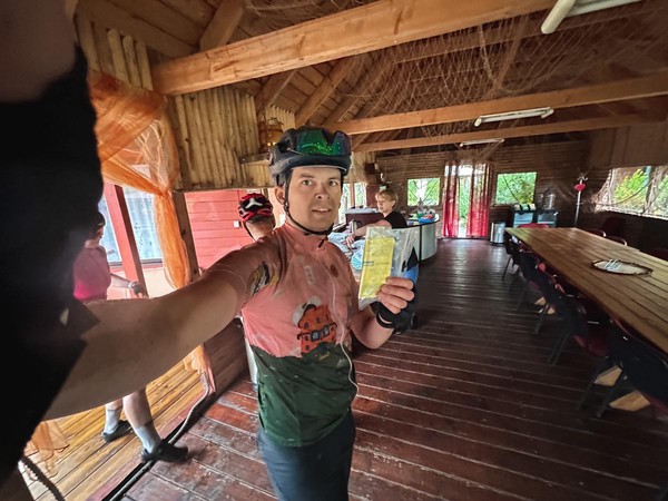 22:04 - būnu Tauragės kontroliniame punkte. Rankos jau tiek atmirkusios, kad telefono ekranas nejaučia palietimų. Trinu rankas į šlapius šortus, tad šiaip ne taip padarau foto ir įkeliu organizatoriams. Šiame punkte jau supratau, kad padariau klaidą džiovindamas aprangą, nes lietus taip ir nenustojo, o nuo pirmosios grupės jau atsilieku visa valanda. Valgyt vis dar nesinori, tad pasiėmiau pora batonėlių, užsipildžiau gertuvę ir pajudu link Šakių.