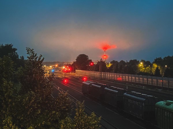 Važiuojant šalia vienas kito, atvažiuojantis automobilis iš priekio pamirksi. Susižvalgom ir nesuprantam kodėl jis čia mums mirgsėjo: lig ir neturėjom akinti šviesomis, gal taip bandė pasisveikinti? Bet už poros šimtų metrų pamatom pasislėpusį krūmuose policijos automobilį. Jau dabar aišku, kodėl vairuotojas mirgsėjo šviesomis, perspėjo apie stovinčius pareigūnus 😄. Pasiekus Kazlų rūda, nustoja lyti. Važiuojant miestelio gatvėmis - pasivaidena, kad matau kylančią raudoną saulę, kas vėliau paaiškėjo - buvo tiesiog kamino apšvietimas 😆: